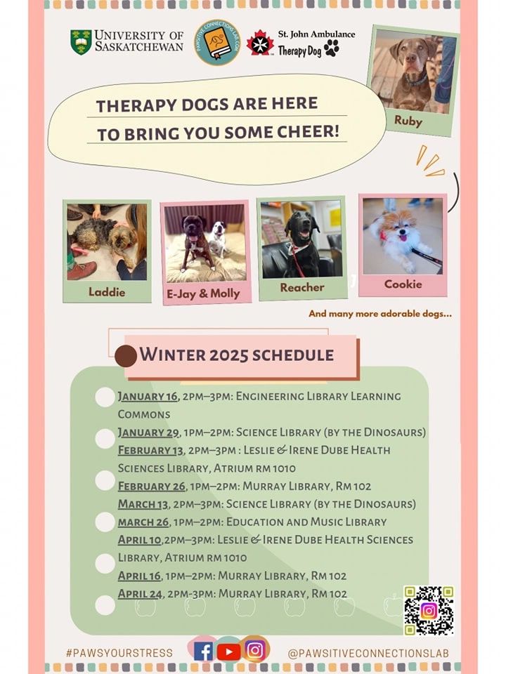 The therapy dogs in the PAWS Your Stress program are very active visiting Saskatoon.