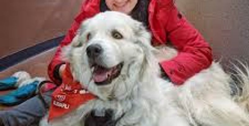 Mia, a Great Pyrenees, was the slowest polar bear to pass the therapy dog test. Mia LOVED people!