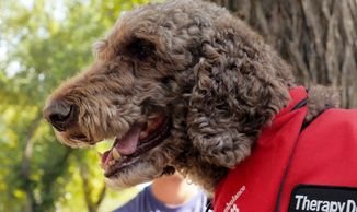 Womble is a Standard Poodle and star of the University of Saskatchewan therapy dog video!